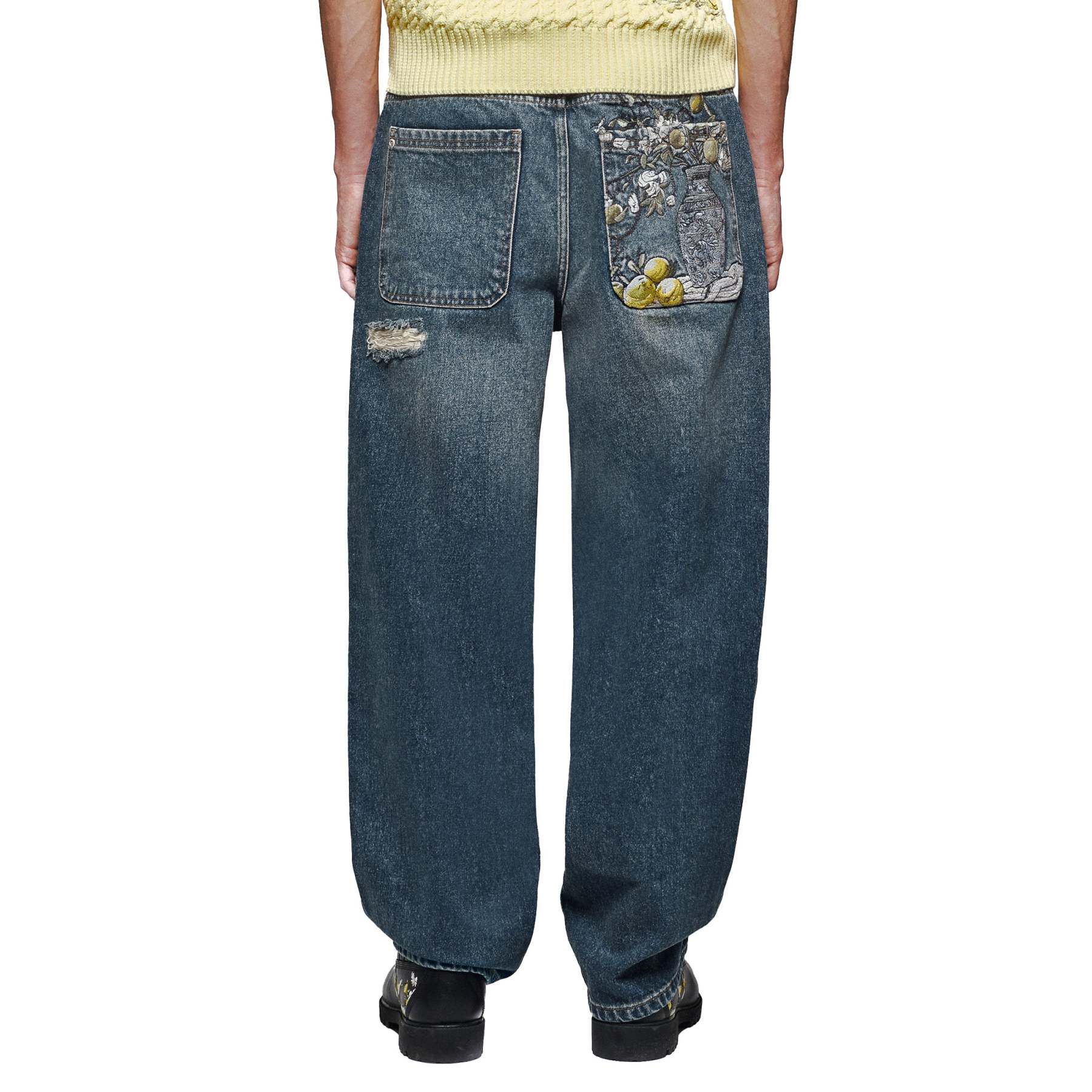 14,5oz denim / 100% cotton / embroidery on front and back / effect washing / distressing on front and back / custom button / baggy fit / fits true to size