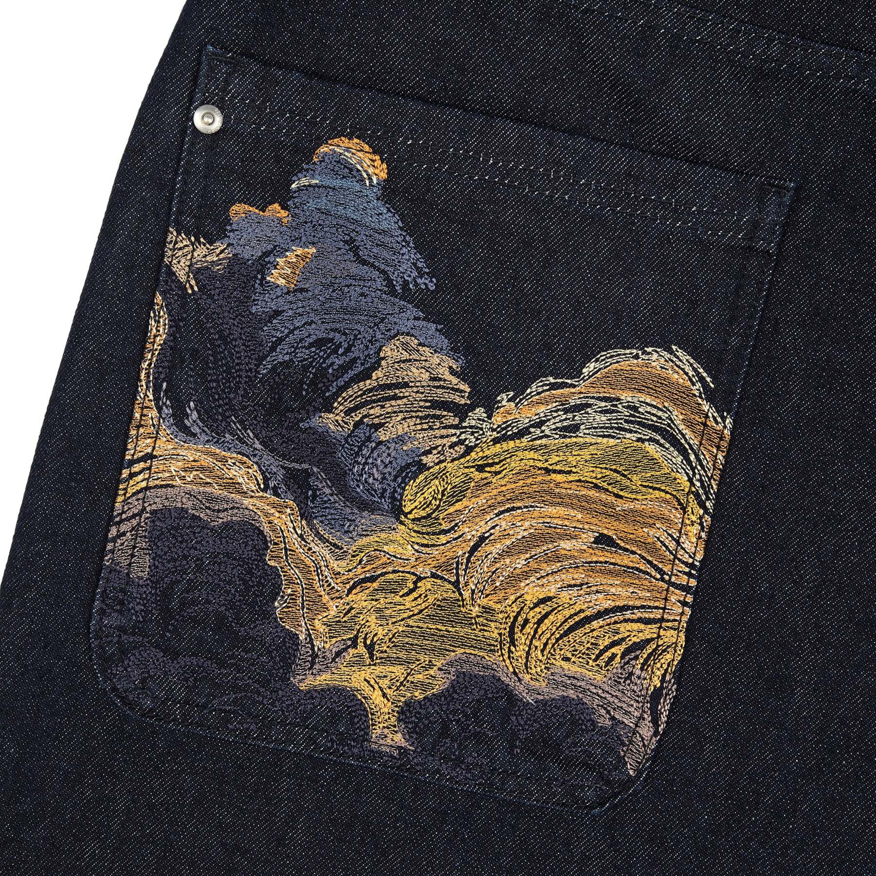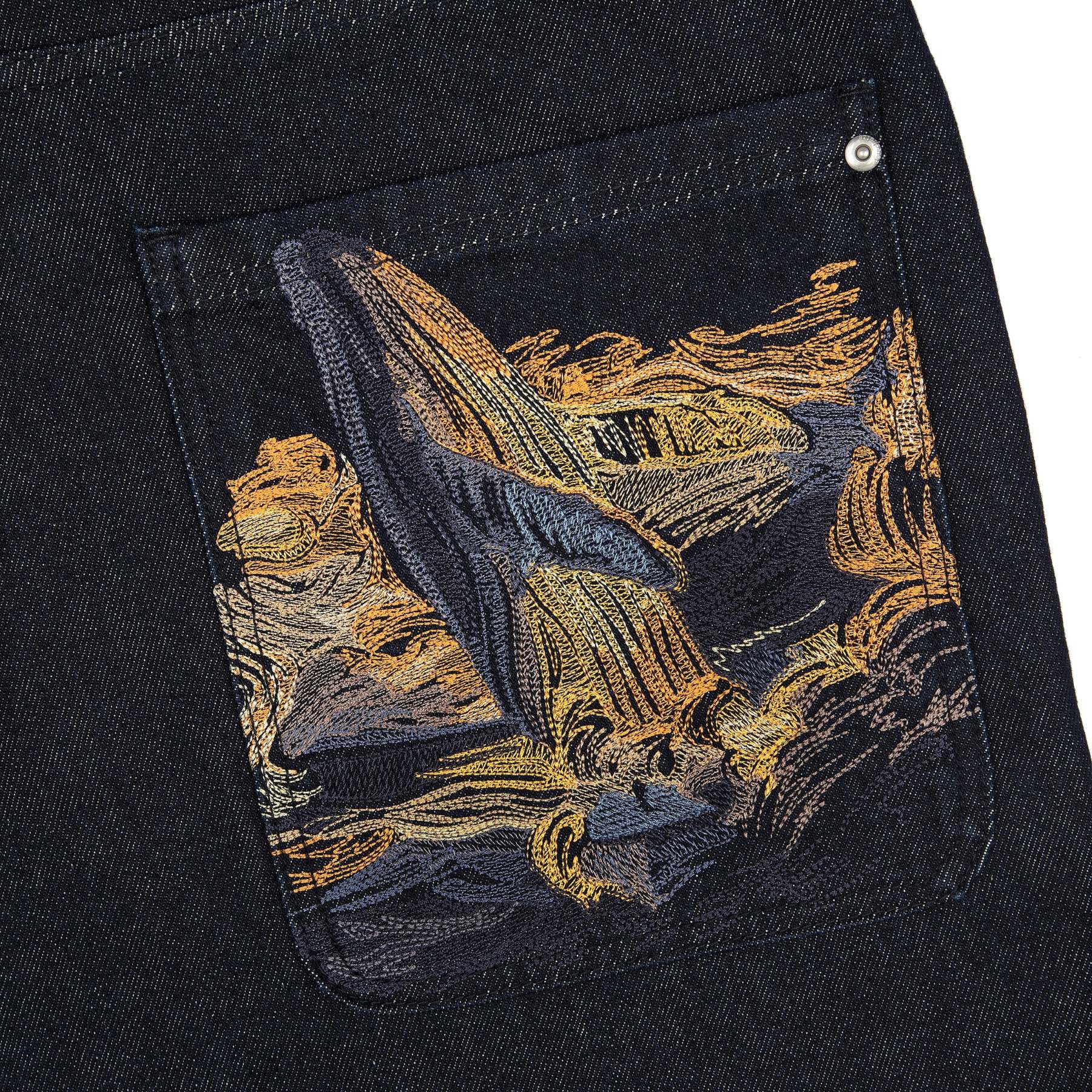 14,5oz denim / 100% cotton / embroidery on back pockets / embroidered leather patch / wash inside out / fits true to size